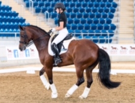 When you make a downward transition within the pace, his tendency is to get on the shoulders… try to ride him in shoulder-in so he can’t get onto the forehand